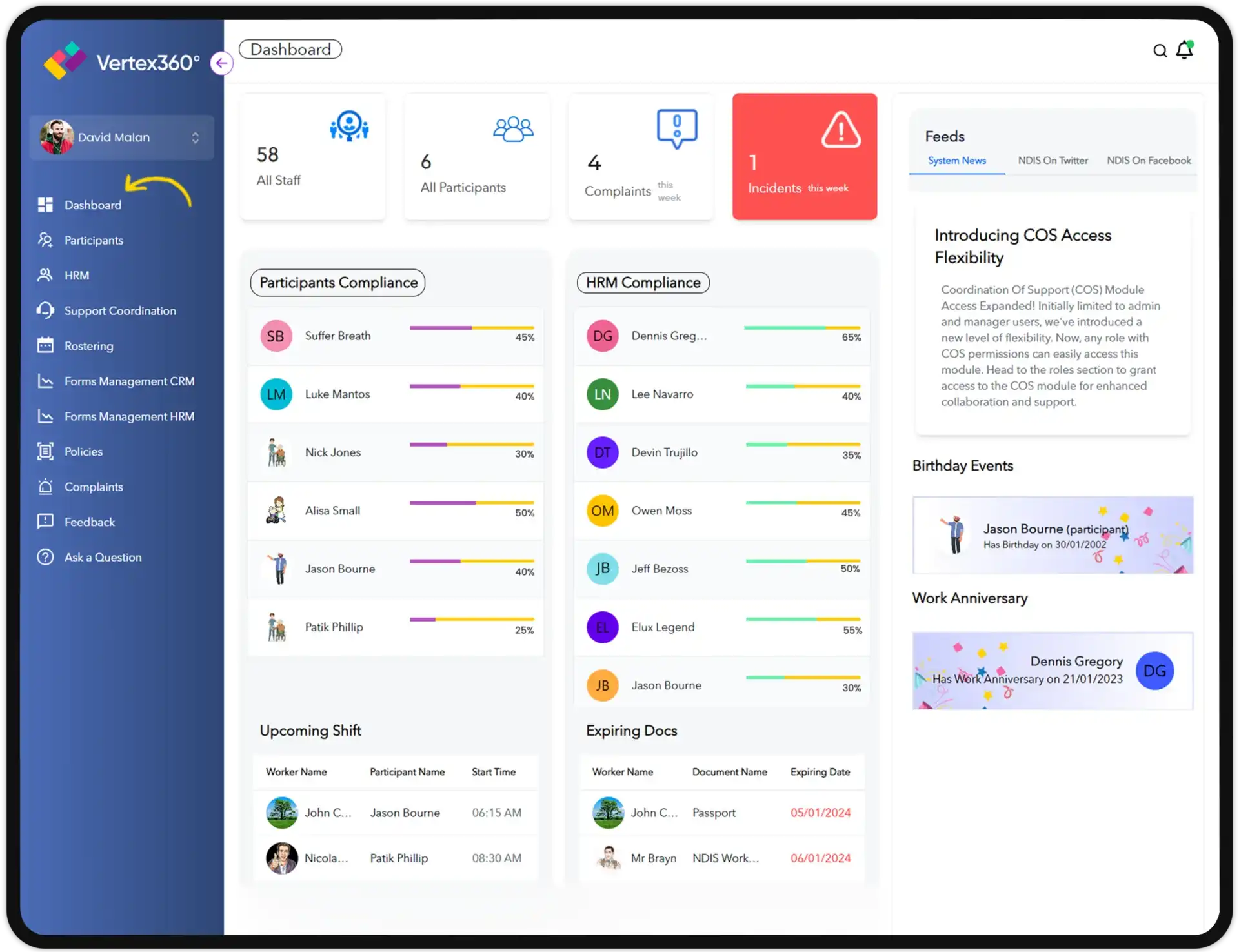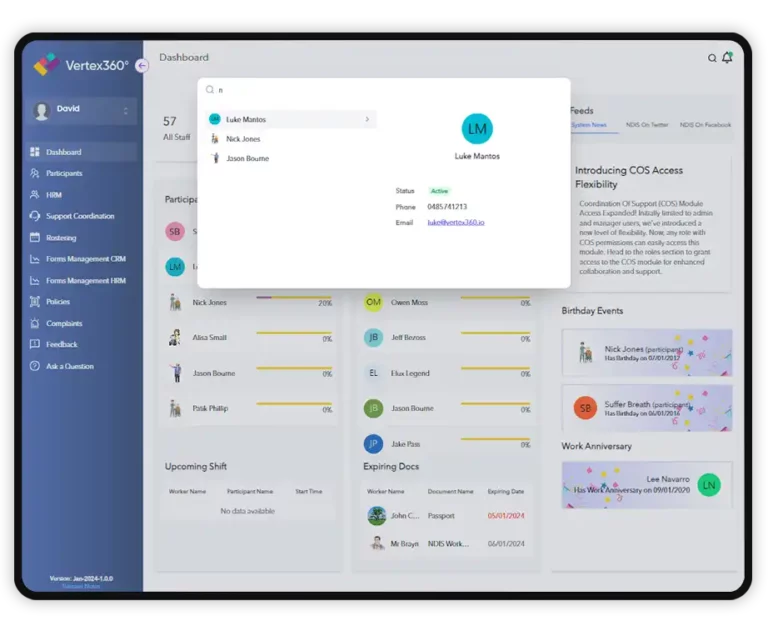 Vertex360 Worker Management System is a comprehensive system that helps you to manage your workers effectively. Our NDIS Management Software includes a variety of features that allow you to track your workers’ performance, schedule shifts, and more. The system allows service providers to assign participants so that they align perfectly with their individual needs and stay compliant.