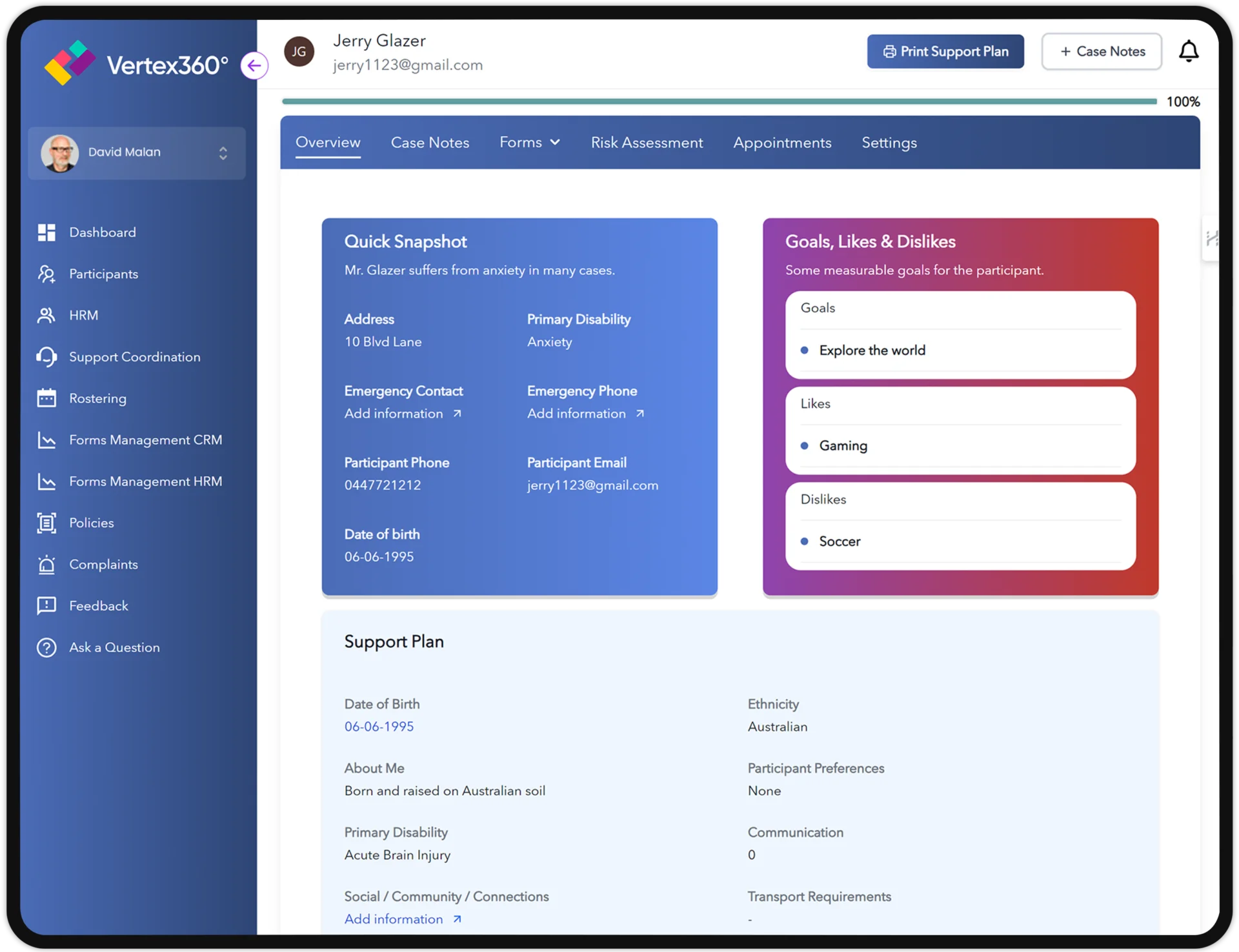 At Vertex360, we understand the importance of balancing accessibility with security, especially when it comes to participant data. Our Worker’s Limited Control feature ensures only support workers have the necessary access to participant information while maintaining strict privacy and security protocols.